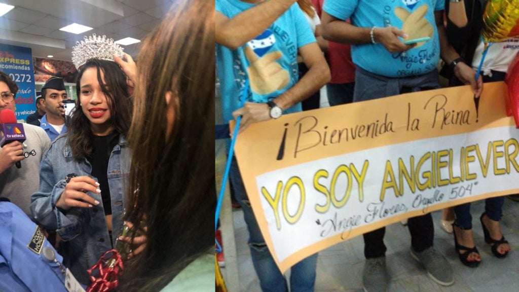 Durante su arribo los encargados de la organización le colocaron una corona en señal de ser nombrada la “Reina de Honduras”.