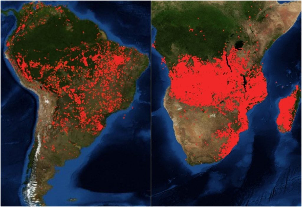 El portal web, Global Forest Watch Fires confirman la superioridad numérica de los incendios registrados en el continente africano. Entre el 20 y 27 de agosto, solo en Angola, se registran más de 130,000 incendios lo que supera la suma de los contabilizados en Brasil, Bolivia y Paraguay que no superan los 126,000.