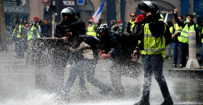 Según los canales locales, varios miles de manifestantes se han reunido en los Campos Elíseos. Varios de ellos han tratado de romper la cerca para poder entrar a la zona cerrada de demostración en la Plaza de la Concordia. Las fuerzas del orden utilizaron gases lacrimógenos y cañones de agua para disipar a los manifestantes.