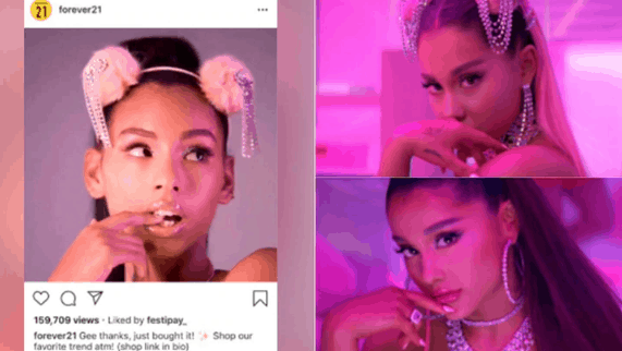 La demanda incluye capturas de pantalla del Instagram de Forever 21 con peinado y ropa similar a los vistos en el video musical 7 Rings de Ariana Grande.