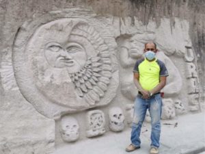 El capitalino, con cincel y martillo en mano, aprovecha la cuarentena para esculpir imágenes mayas, dejando un legado artístico para generaciones.
