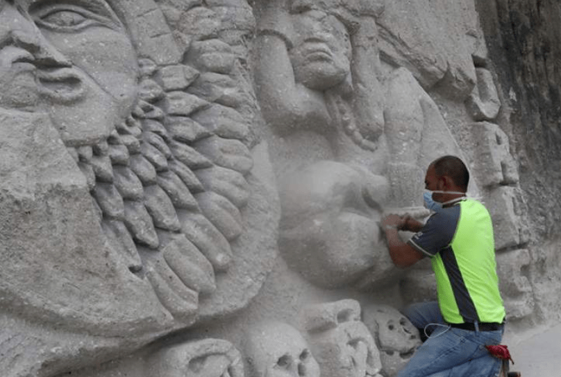 Su osadía fue replicada por varios medios de comunicación, y es que Alejandro Espinoza sin contar con formación que avalen sus conocimientos se ha robado las miradas al tallar figuras mayas en pleno paredón de un cerro a orillas del bulevar Fuerzas Armadas (FFAA), capital de Honduras.