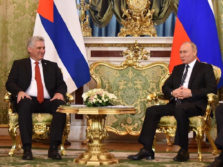 El presidente de los Consejos Estados de Ministros de Cuba, Miguel Díaz-Canel Bermúdez y el presidente de Rusia Vladimir Putin, se reunieron en Kremlin en la sede Gobierno Ruso para reforzar políticas de cuba amistad y cooperación