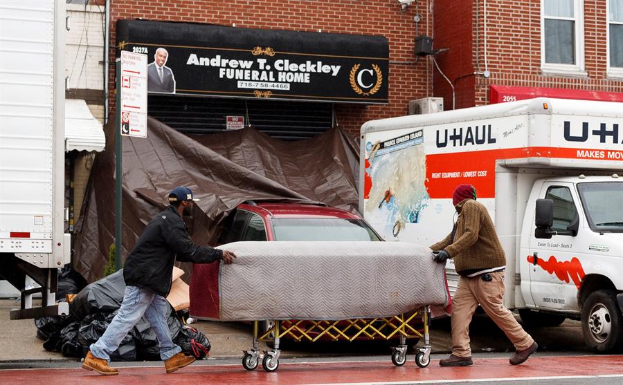 Los cadáveres pertenecían a la funeraria Andrew T. Cleckley en el vecindario Flatlands de Brooklyn que ha tenido una gran demanda debido a la crisis de la pandemia.