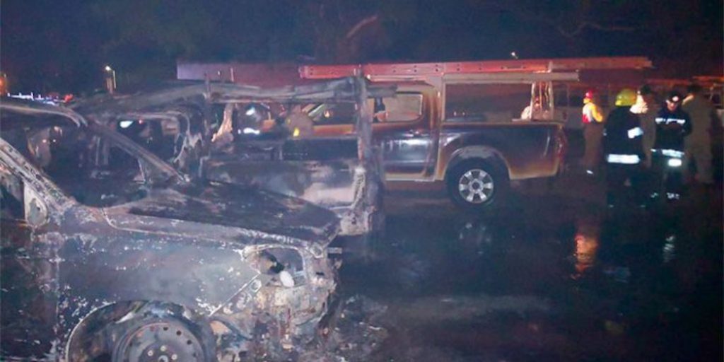 Según el recuento de daños de EEH, cada vehículo reducido a cenizas estaban valorados entre 18 y 20 mil dólares.