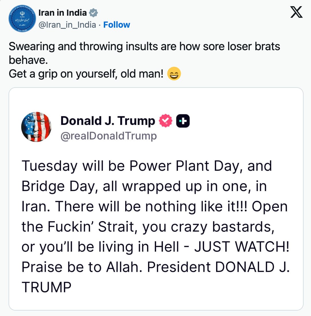 La embajada en España recuperó un fotograma del discurso de Trump junto a un conejo de Pascua, escribiendo: “El mundo sería más seguro si el conejo tuviera el micrófono”. En Turquía se compartieron ilustraciones sarcásticas que comparaban a Trump y al primer ministro israelí, Benjamin Netanyahu, con “parásitos peligrosos”, y se recordaron los numerosos ultimátums de EE.UU. hacia Irán, destacando su historial de fracasos.