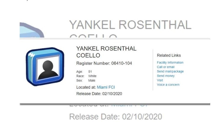 Se tenía previsto que Rosenthal saliera de la cárcel hasta el 26 del presente mes, pero su libertad la recobró 18 días antes.