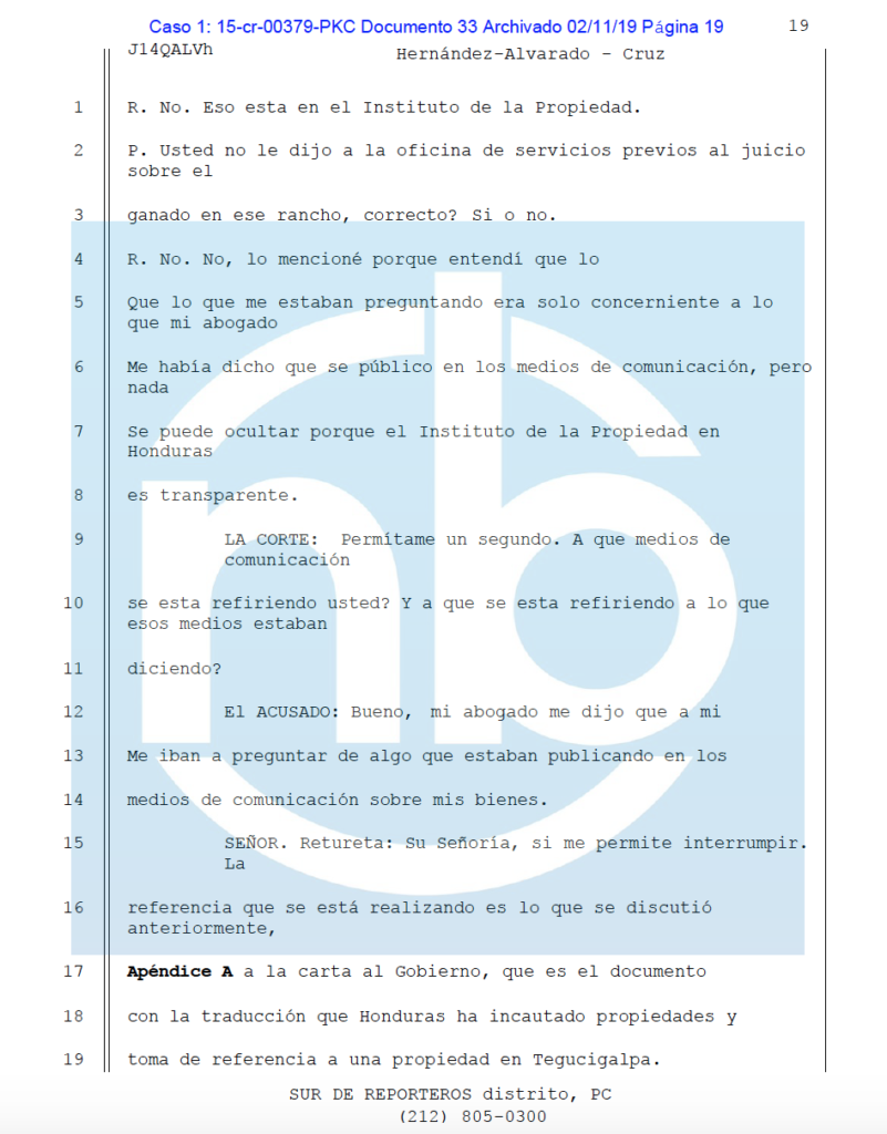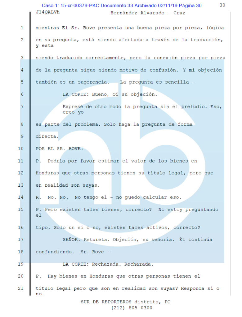 Emil Bove le pregunto a Tony si a el le era familiar el termino “testaferro” al cual este le contestó con un sí. Luego de eso, Emil Bove le pudo sacar una escandalosa verdad a Tony Hernández. La gran sorpresa de esta audiencia fue el momento en el cuál bajo el hábil cuestionamiento del fiscal Emil Bove III, Tony Hernández, hermano del presidente de Honduras Juan Orlando Hernández, acepto ser dueño de propiedades las cuales están bajo el nombre de otras personas.