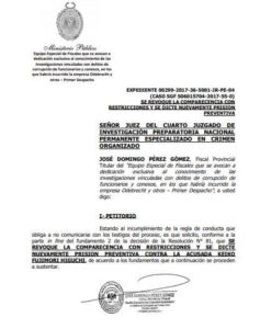 El oficio para solicitar la prisión preventiva fue girada al Cuarto Juzgado de Investigación Preparatoria Nacional Permanente Especializado en Crimen Organizado.