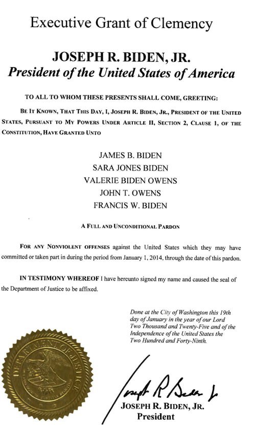 Las personas que recibieron los indultos preventivos son sus hermanos, James y Frank Biden, junto con su hermana, Valerie Biden, y sus cónyuges.