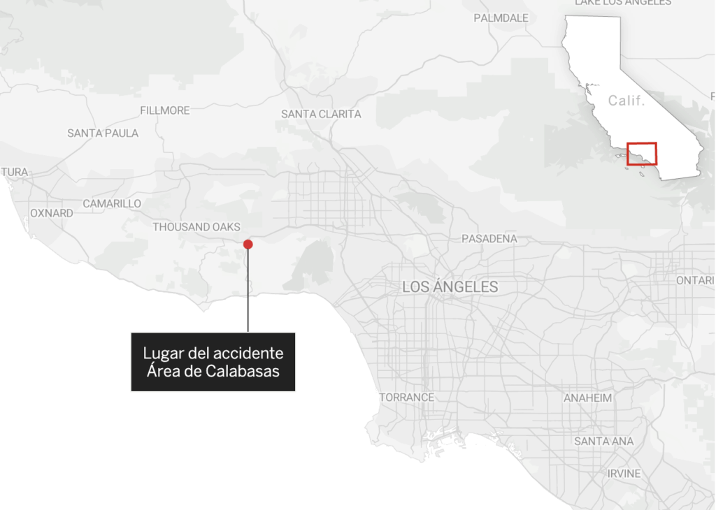 El helicóptero se estrelló cerca de las 10 de la mañana contra una colina en la zona de Calabasas, un suburbio de alto poder adquisitivo del noroeste de Los Ángeles, cerca del número 4200 de las Virgenes Road.