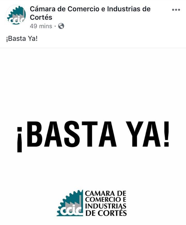 “Basta ya”, cita el posteo hecho este viernes en la cuenta oficial de Facebook referente a la crisis que se vive en Honduras.