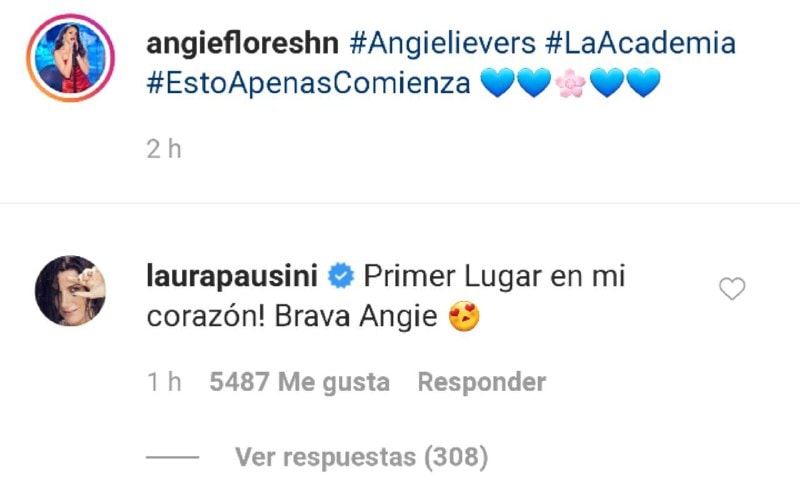 La cantante internacional Laura Pausini alentó a la joven hondureña ganadora del segundo lugar en la Academia, Angie Flores, comentando un posteo de Instagram.