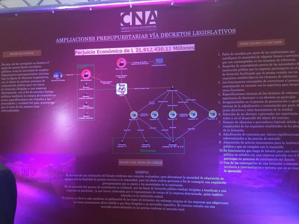 CNA-DMCP-001-2016, es el número de expediente o línea de investigación con la cual el Consejo Nacional Anticorrupción (CNA) revela actos de corrupción en el Instituto Nacional de Formación Profesional (Infop) que salpican al actual diputado David Chávez.