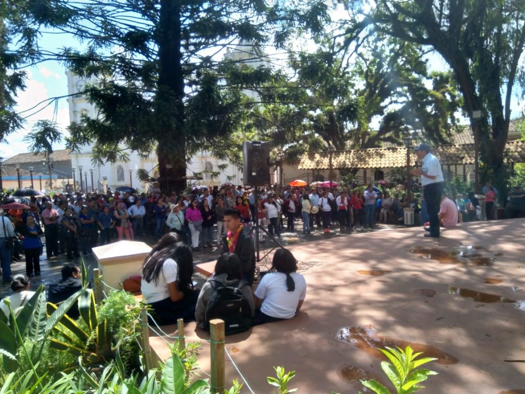 Docentes de Intibucá se congregaron, desde tempranas horas, en el parque López de La Esperanza; atendiendo la convocatoria de la Plataforma de Salud y Educación.