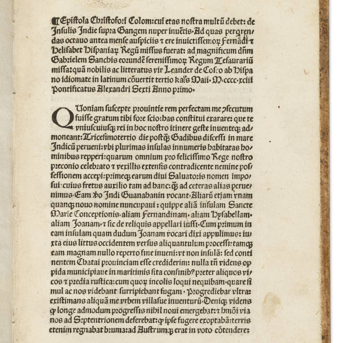 El texto fue fechado en mayo de 1493, enviado Gabriel Sánchez, tesorero de los serenísimos soberanos Fernando e Isabel.