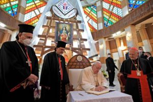 “En las últimas décadas, Irak ha sufrido los desastres de las guerras, el flagelo del terrorismo y conflictos sectarios basados a menudo en un fundamentalismo que no puede aceptar la pacífica convivencia de varios grupos étnicos y religiosos, de ideas y culturas diversas. Todo esto ha traído muerte, destrucción, ruinas todavía visibles”, dijo el líder religioso en su primera visita a la nación.