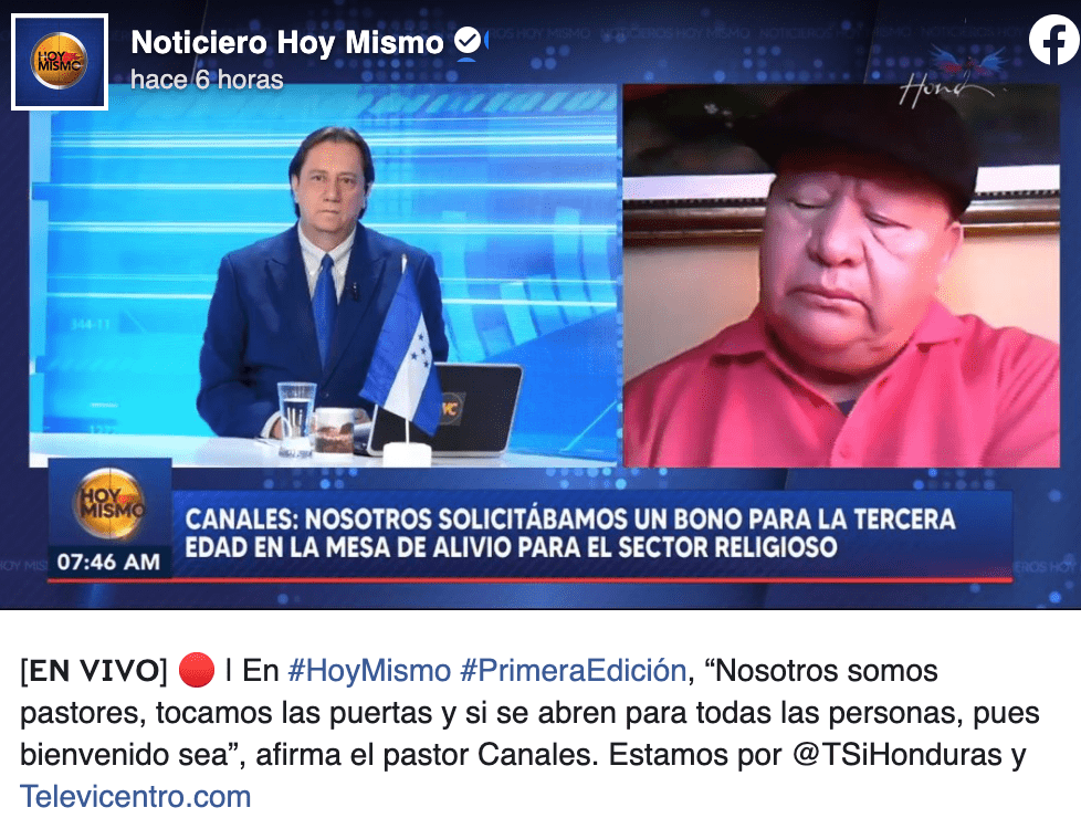 Fue el reconocido líder religioso Oswaldo Canales quien detalló ante los medios de comunicación la necesidad económica de al menos mil pastores de la tercera edad.