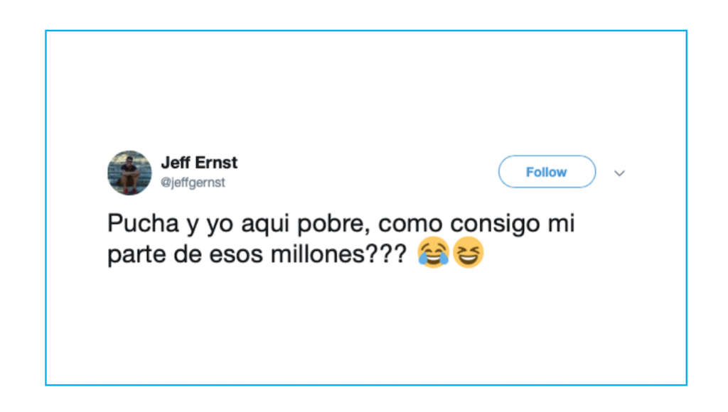 Pucha y yo aqui pobre, como consigo mi parte de esos millones??? 😂😆 https://t.co/7cffjimr1D