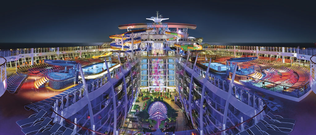 El barco, con capacidad para 6,700 pasajeros, cuenta a bordo con una aplia oferta de entretenimiento que incluye pista de patinaje sobre hielo, simulador de surf, tobogan elevado en altamar, espectáculos musicales, 20 restaurantes especializados e incluso un bar servido por robots.