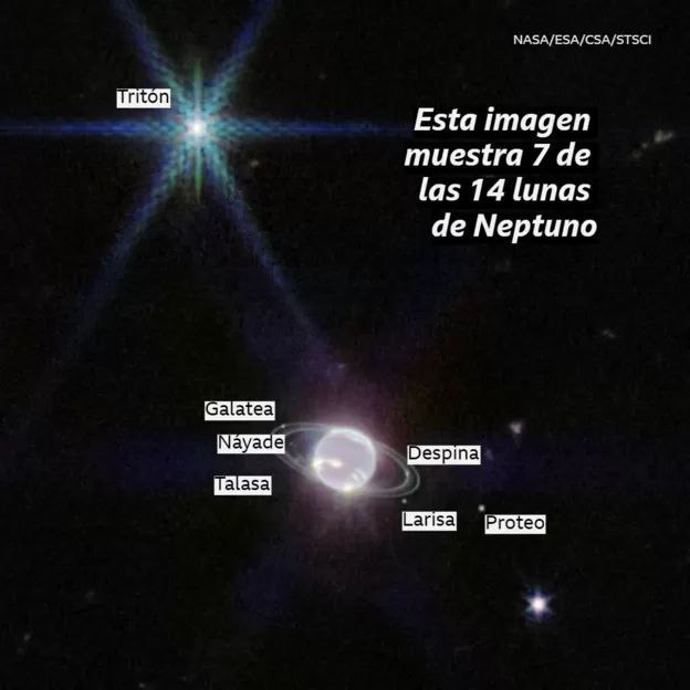 Otro dato importante, es que la fotografía también capta siete de las 14 lunas que rodean el planeta.