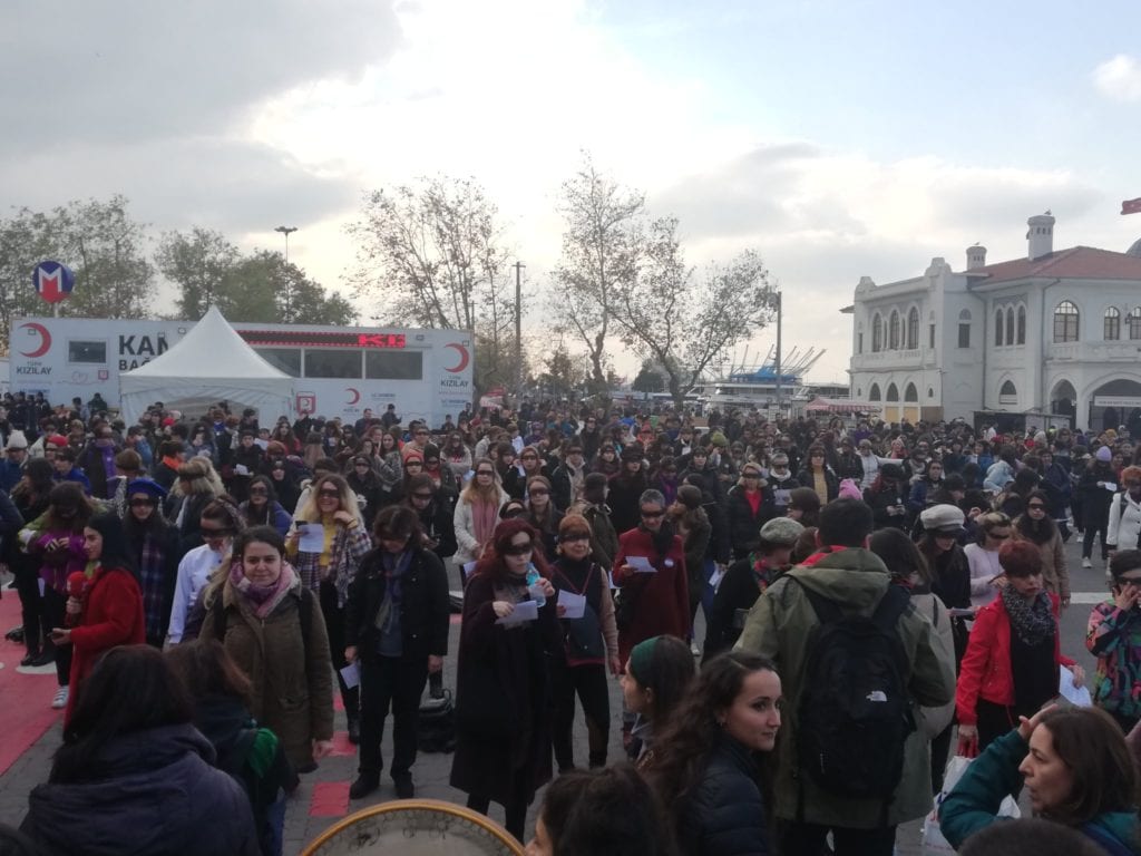 Unas 300 mujeres se reunieron en el barrio Kadiköy, para hace sentir su descontento con el abuso contra las mujeres.