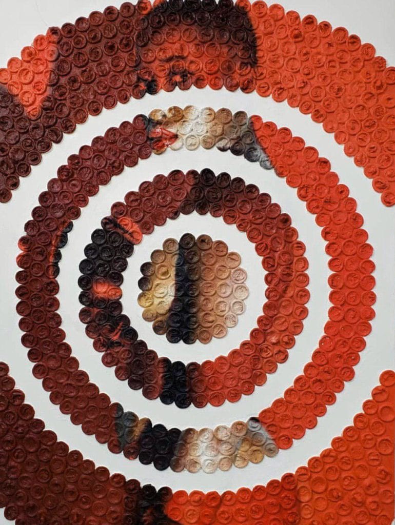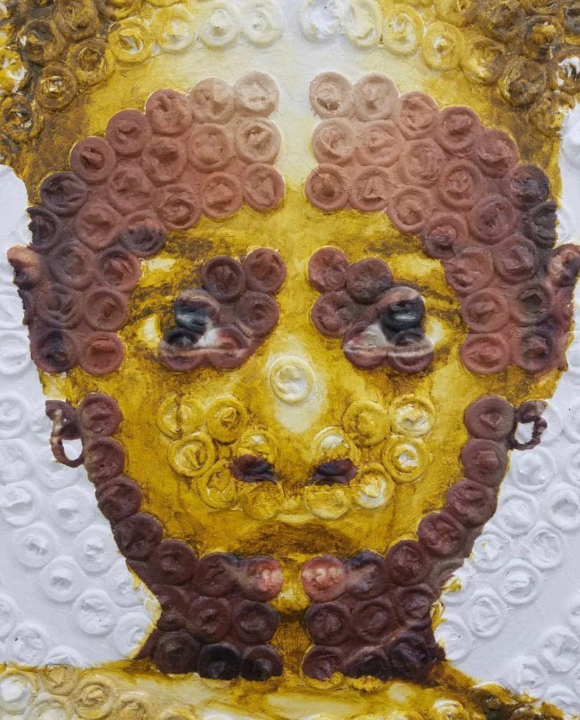 Jones, utilizó condones como base de una serie de tres retratos para crear conciencia sobre el tema del tráfico sexual. Esas piezas fueron enviadas al Gasparilla Festival of the Arts lo que le valió para llevarse el premio como “Artista Emergente”.