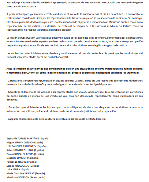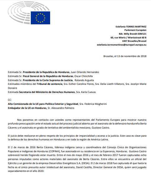 Federica Mogherini, la alta representante de la Unión Europea (UE), instó hoy a las autoridades hondureñas a garantizar que el juicio por el asesinato de la activista Berta Cáceres, sea justo.